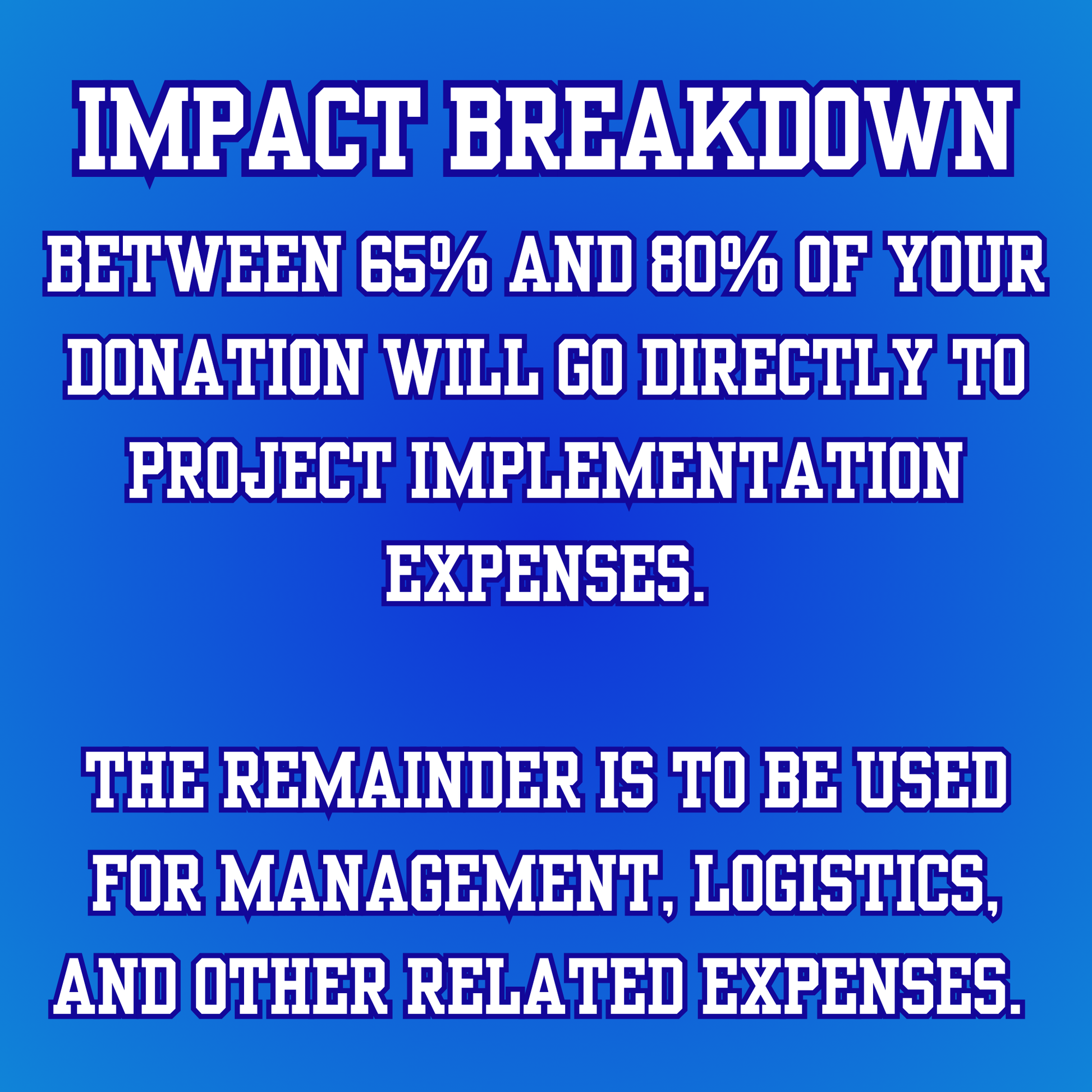 🎁 Between 65% and 80% of your donation will go directly towards project implementation expenses. The remainder is to be used for management, logistics, and other related expenses.